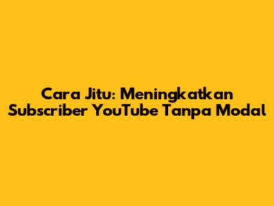 Cara Jitu: Meningkatkan Subscriber YouTube Tanpa Modal