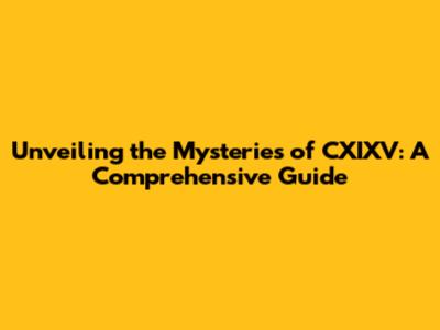Unveiling The Mysteries Of CXIXV: A Comprehensive Guide